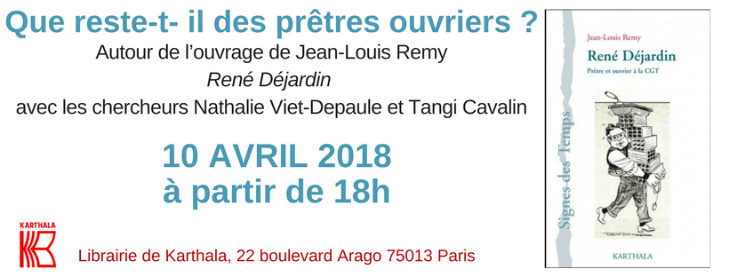 Jean-Louis Rémy a été l’un des deux lauréats du prix Jean Maitron attribué en décembre 2015. Il a publié « René Déjardin, un prêtre ouvrier à la CGT » et interviendra le 10 avril dans le cadre des nouvelles rencontres de la librairie Karthala.