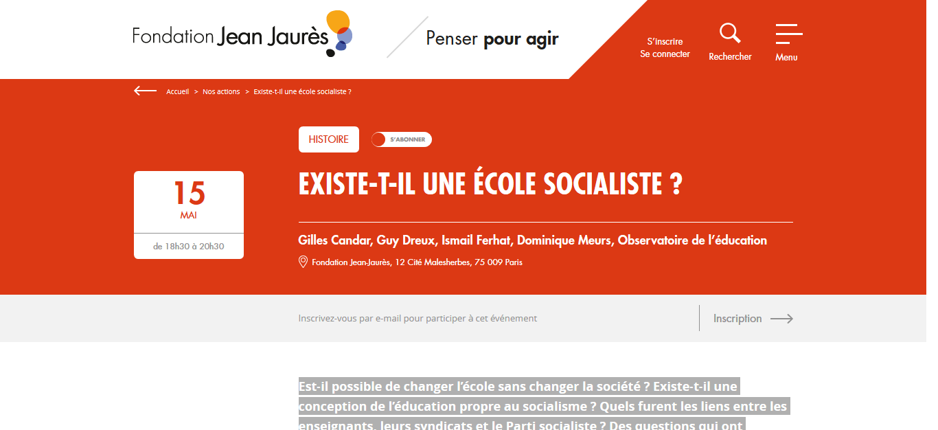 Parmi celles-ci la Fondation Jean Jaurès a choisi d’interroger les liens entretenus entre les acteurs de l’École et le parti socialiste au cours des XIXème et XXème siècles et de se demander s’il existe l une conception de l’éducation propre au socialisme ?