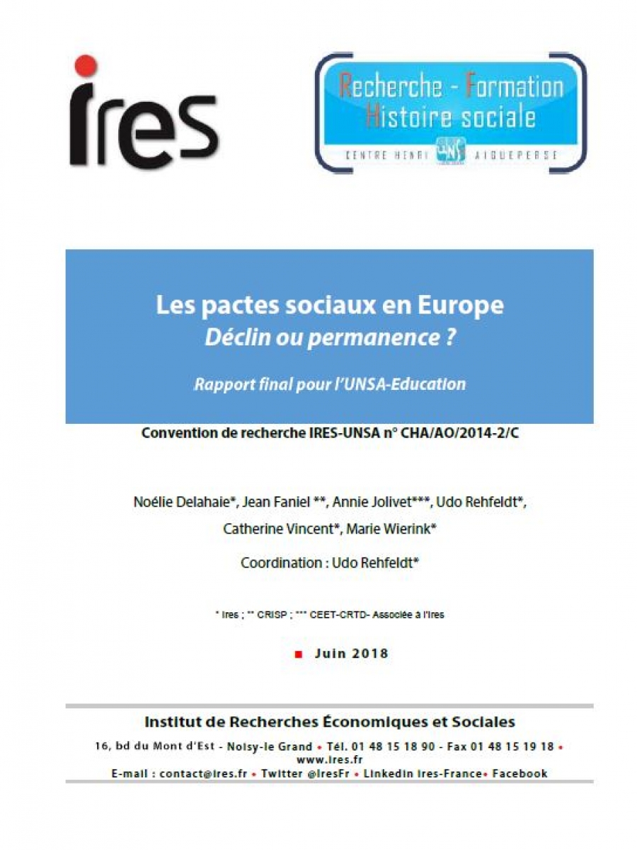 Conduite par Noélie DELAHAIE, Jean FANIEL, Annie JOLIVET, Udo REHFELDT, Catherine VINCENT, Marie WIERINK de l’IRES, la recherche étudie les pactes sociaux (conclus ou échoués) depuis les années 1990 dans sept pays européens. L’analyse comparative s’appuie sur sept monographies-pays détaillées. Ces pactes sont des accords bi- ou tripartites interprofessionnels nationaux d’une certaine complexité qui comprennent, d’un point de vue syndical, des avancées, mais aussi des concessions, le plus souvent salariales. Pour chaque pays, les monographies présentent les principaux pactes et analysent leur contenu, en les situant dans le contexte économique et dans le cadre des systèmes nationaux de négociation collective. Elles identifient les acteurs qui étaient à l’initiative des négociations, leurs objectifs, ainsi que les concessions et contreparties obtenues dans la négociation. Le cas échéant, les monographies expliquent également ce qui a fait échouer la négociation.