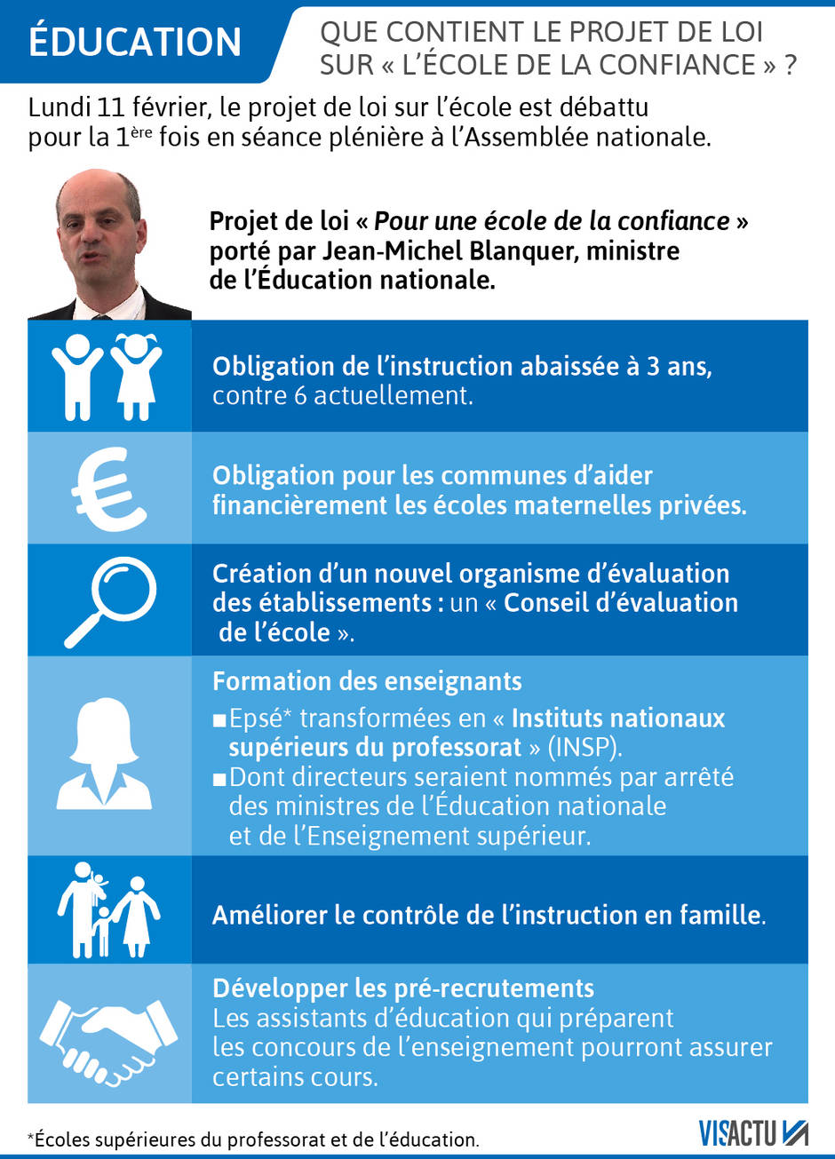 [Image : Ouest-France https://www.ouest-france.fr/education/la-loi-blanquer-sur-l-ecole-de-la-confiance-au-menu-des-deputes-ce-lundi-6218387%5D