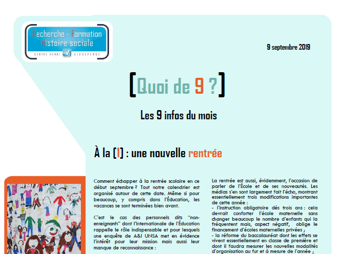 Une rentrée avec également la présentation des travaux de recherche du Centre Henri Aigueperse, des ressources à voir, écouter, lire et déjà des rendez-vous à noter dans son agenda…
