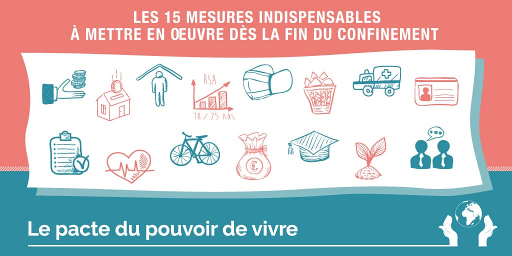 Retrouvez le détail de ces 15 mesures ainsi que le pacte du pouvoir de vivre ici : https://www.pactedupouvoirdevivre.fr/