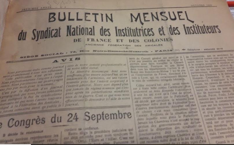 Le 24 septembre 1920 s’ouvre le congrès de la fédération des syndicats d’instituteurs, basées sur des amicales professionnelles. Des militantes et militantes se sont rassemblés à la Mutualité à Paris, dans un congrès à huit clos, car on souhaitait garder les débats à l’abri d’oreilles indiscrètes. Il faut dire que le syndicalisme des enseignant.es n’est pas autorisé par la loi et que le ministre de l’Instruction publique, André Honnorat a donné jusqu’à la fin du mois de septembre de cette année pour dissoudre les syndicats locaux. Dans ce contexte troublé va naître une nouvelle organisation, le SNI qui aura une influence considérable sur la profession et sur le monde éducatif. 100 ans plus tard, le souvenir du SNI, devenu SNI-PEGC puis transformé en Syndicat des enseignants de l’UNSA en 1992, peut être rappelé et ravivé.