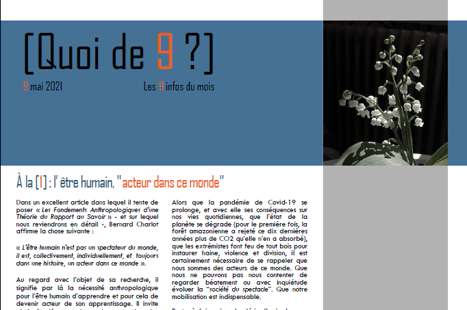 Toutes ces information et d’autres sont à retrouver dans [Quoi de 9 ?] de ce mois de mai 2021 :