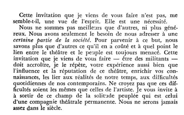 Pour retrouver le texte de Jean Vilar publié dans la revue Esprit de mai 1965 et à nouveau disponible dans le cadre des 90 ans de la revue : Le service public | Revue Esprit (presse.fr)