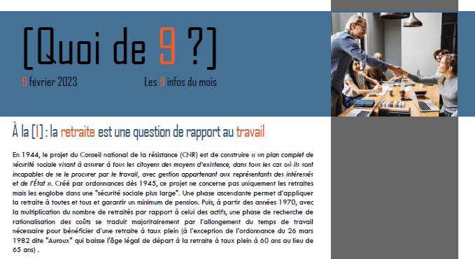 Toutes ces « coupures » sont à retrouver dans [Quoi de 9 ?] de ce mois de février :