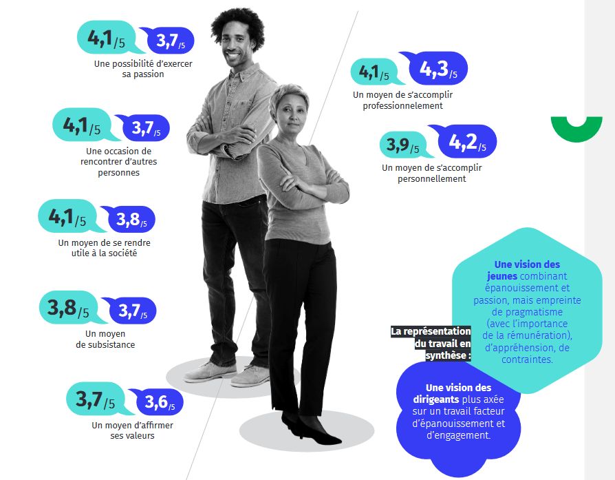 – les employeurs voient dans le travail, davantage que les jeunes, une source d’accomplissement personnel et individuel.