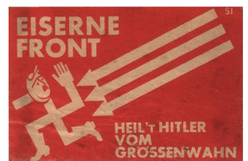 Serge Tchakhotine (1883-1973) est un scientifique russe, élève du psychologue bien connu Pavlov. Partisan de la Révolution russe, il doit quitter son pays d’origine pour se réfugier en Allemagne. Là, il met au service des socialistes de ce pays son expertise pour lutter contre le nazisme. Un premier temps considéré comme farfelu et peu crédible, il réussit à convaincre les dirigeants du SPD (le parti social-démocrate allemand) qu’il détient les moyens scientifiques de lutter contre le nazisme. Un des chapitres du livre[1] revient sur l’un des aspects les plus connus de Tchakhotine à savoir l’invention du symbole des trois flèches qui se popularise dans les années 1930 dans plusieurs partis socialistes européens. L’auteur explique la genèse de cette nouvelle propagande : « Nous avons entre les mains le récit authentique et inédit de la suite des événements de cette année tragique [1932], où se jouait le sort de l’Allemagne et de l’Europe. Il est écrit par l’homme qui a été à l’époque le chef de propagande du ‘Front d’airain’ la grande organisation de défense antihitlérienne, créée par le parti social-démocrate allemand. »[2] En réalité, il l’avoue dans l’édition de 1952, il s’agit bien de lui qui était alors chargé de la propagande du SPD et qui est donc l’auteur de cette étude que l’on trouve à l’intérieur de l’ouvrage.