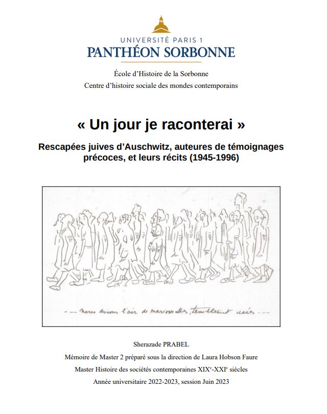 Le Prix Maitron a récompensé cette année le mémoire de master2 de Shérazade Prabel , « Un jour je raconterai ». Rescapées juives d’Auschwitz, auteures de témoignages précoces, et leurs récits (1945-1996) . Cet excellent mémoire de recherche a intéressé l’ensemble du jury en raison de la qualité de la recherche et de l’analyse faite. Depuis 1989, le … Lire la suite Prix Maitron 2024 : « Un jour je raconterai » par Shérazade Prabel