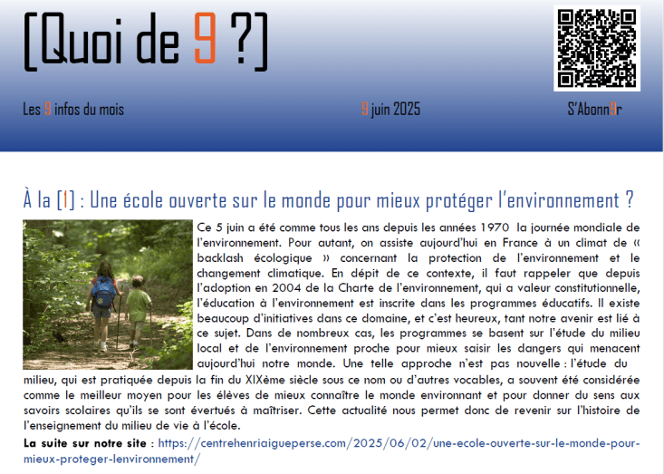 Ce sont autant de questions que nous posons dans ce nouveau numéro de notre [Quoi de Neuf ?] avec également un retour sur plusieurs rencontres scientifiques, qui avaient pour objet d’interroger notre avenir et d’envisager de nouvelles perspectives. L’habituel agenda et l’édito complètent cette lettre mensuelle de juin. À retrouver ci-dessous :