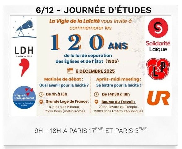 En ce mois d’anniversaire des 120 ans de la Loi de 1905 officialisant la séparation des églises et de l’État, le Centre Henri Aigueperse vous propose un panorama (non exhaustif) des évènements à ne pas manquer.