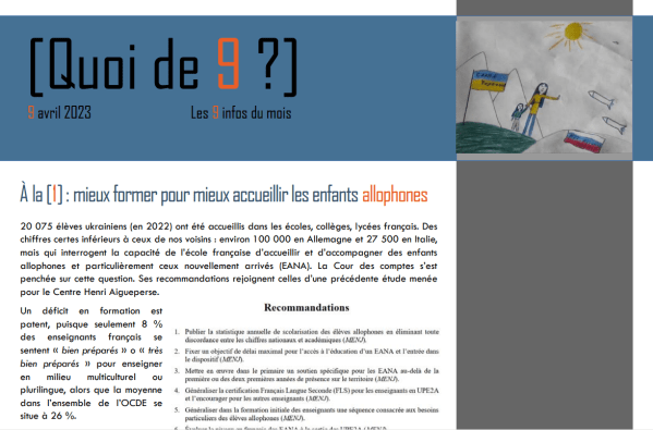 L’accueil massif d’enfants ukrainiens dans les écoles et établissements scolaires en France (au 15 novembre 2022, 20 075 élèves ukrainiens avaient été accueillis dans les écoles, collèges, lycées français) soulève la question de la prise en charge des élèves allophones. La Cour des comptes s’est penchée sur le sujet. Elle pointe dans un rapport de... Lire la Suite →