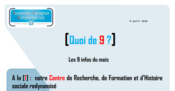 Le 9 de chaque mois, retrouvez les 9 infos de la lettre mensuelle du Centre Henri Aigueperse. A lire ici : quoi de neuf 9 avril 18.2