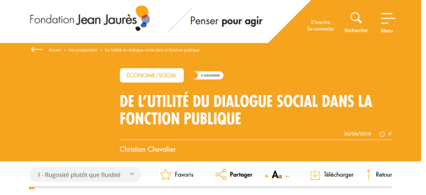 « Il y a, en France, un réel impensé politique sur les conditions de la conduite d’un dialogue social de qualité dans la fonction publique. Notre pays doit s’interroger et enfin avancer sur cette question. En effet, la majorité de nos concitoyens ne perçoivent l’existence d’une relation sociale que lorsqu’elle atteint son paroxysme, à savoir la... Lire la Suite →