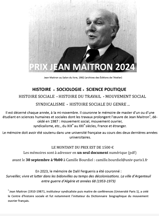 Candidatez au Prix Maitron 2024 jusqu’au 30 septembre